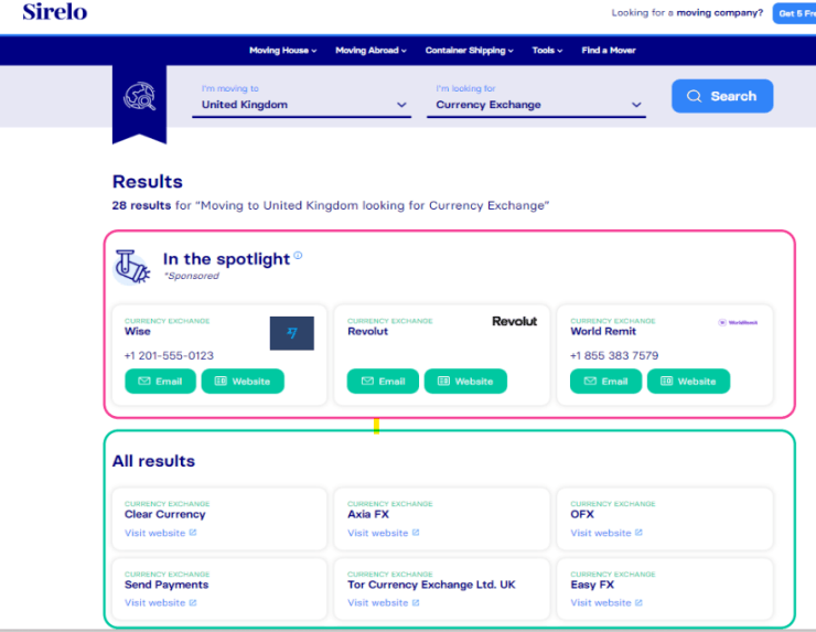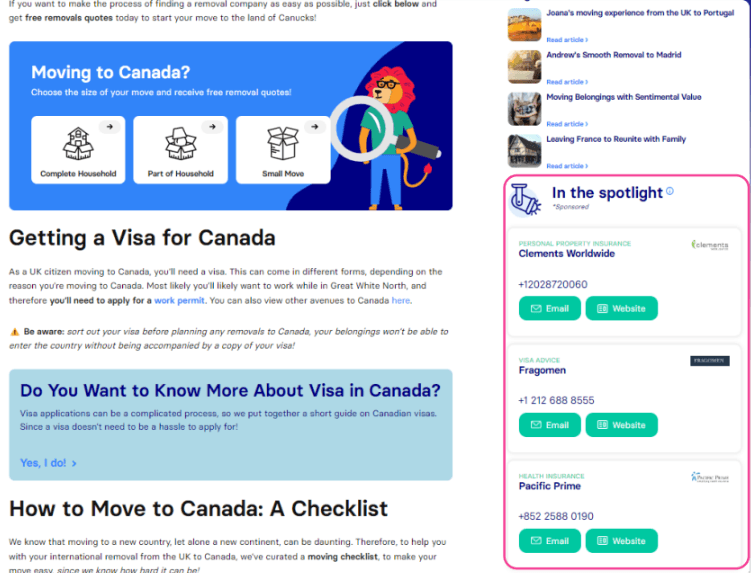 Our spotlight program allows businesses to access premium sponsored positions within our Relocation Servicea directory: